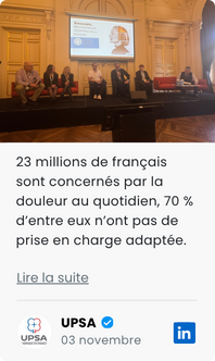 Fondé en 1935, UPSA est un laboratoire français présent auprès des patients et des pharmaciens. Avec sa gamme de produits d’automédication, de dispositifs médicaux et de compléments alimentaires, UPSA permet aux patients de soulager les maux bénins du quotidien.